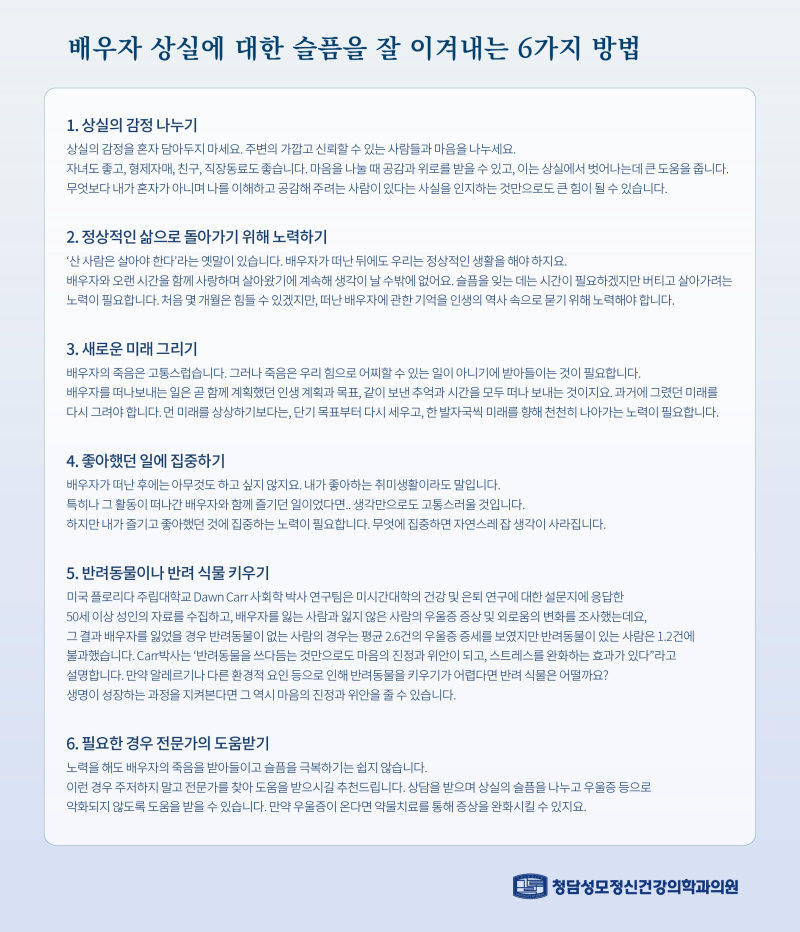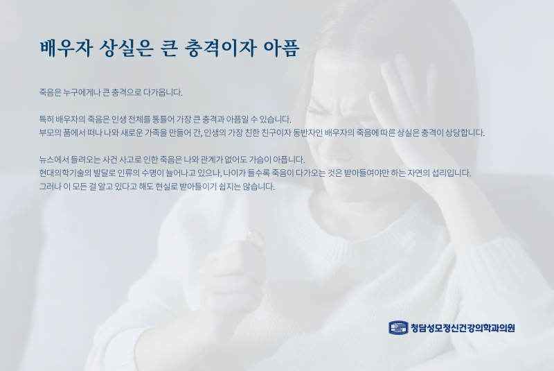 배우자를 잃는다는 것은 엄청난 충격과 고통입니다.애도할 시간을 충분히 가져야…_청탄성모정신건강과