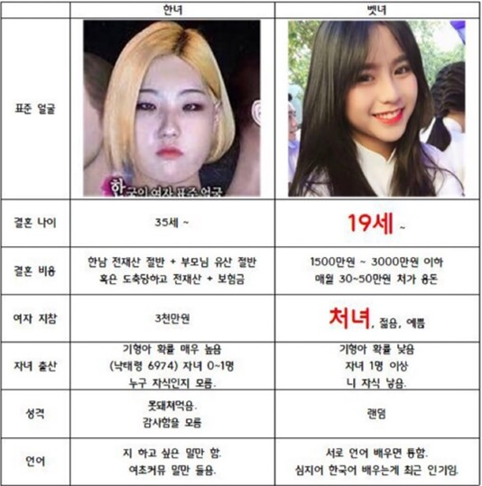 베트남의 일대일 다수가 만나는 장소에 가야하고 일대일 미팅, 약속 및 한 달간의 만남을 걸러내야 하며 특히 그 장소에 가지 않는 회사를 걸러내야 합니다. 회석. 여러 국가와 거래하는 기업도 허용되지 않습니다. 한국에서 베트남 에이전시에 위탁된 업체는 피하는 것도 좋다. 요즘은 한국의 젊은 남자들도 많이 갑니다. 시댁 식구들에게 용돈을 주는 것은 좋지 않다고 합니다.