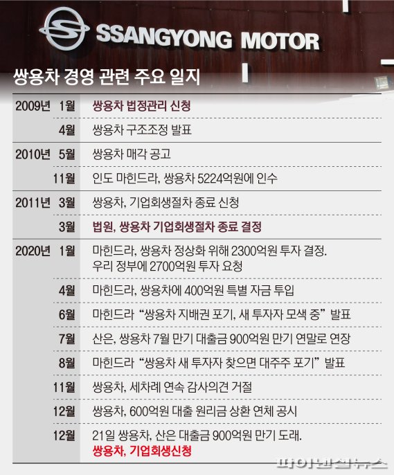 쌍용자동차 결국 12년 만에 법정관리(기업회생절차)