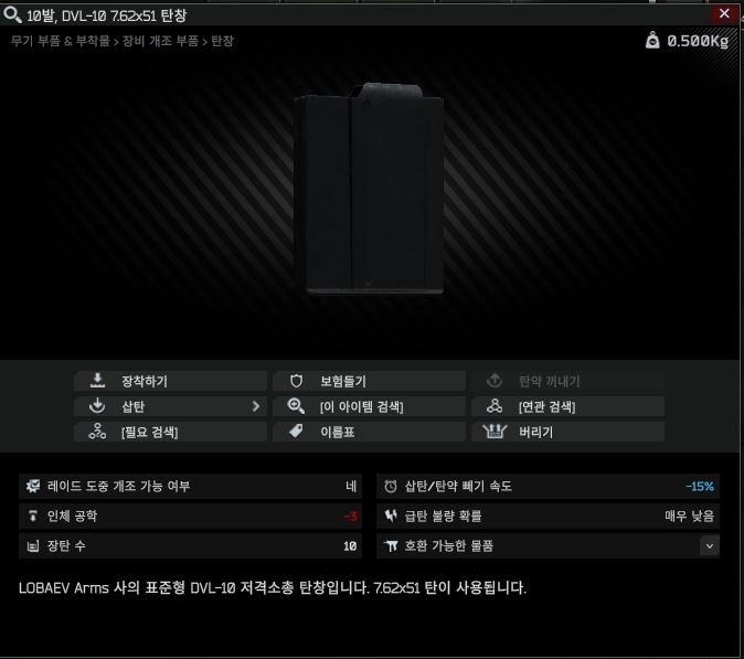 > 무기별 내구도 100% 검색으로 아이템 구매 권장