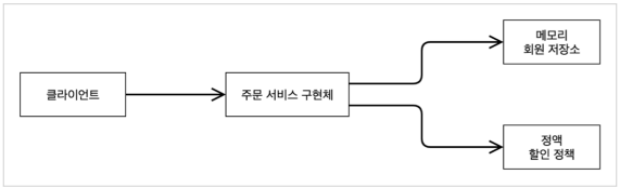 주문서비스는 회원이 매장에서 문의를 하여도 변경이 필요 없으며 정액할인정책(정액)을 지원하거나 DB가맹점+정액할인정책을 지원합니다. 협력적 역할 관계는 그대로 재사용할 수 있습니다.