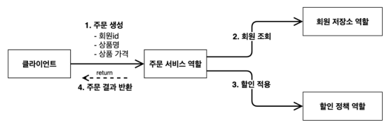 4. 주문 결과 반송 : 주문 서비스는 할인 결과를 포함한 주문 결과를 반환합니다.